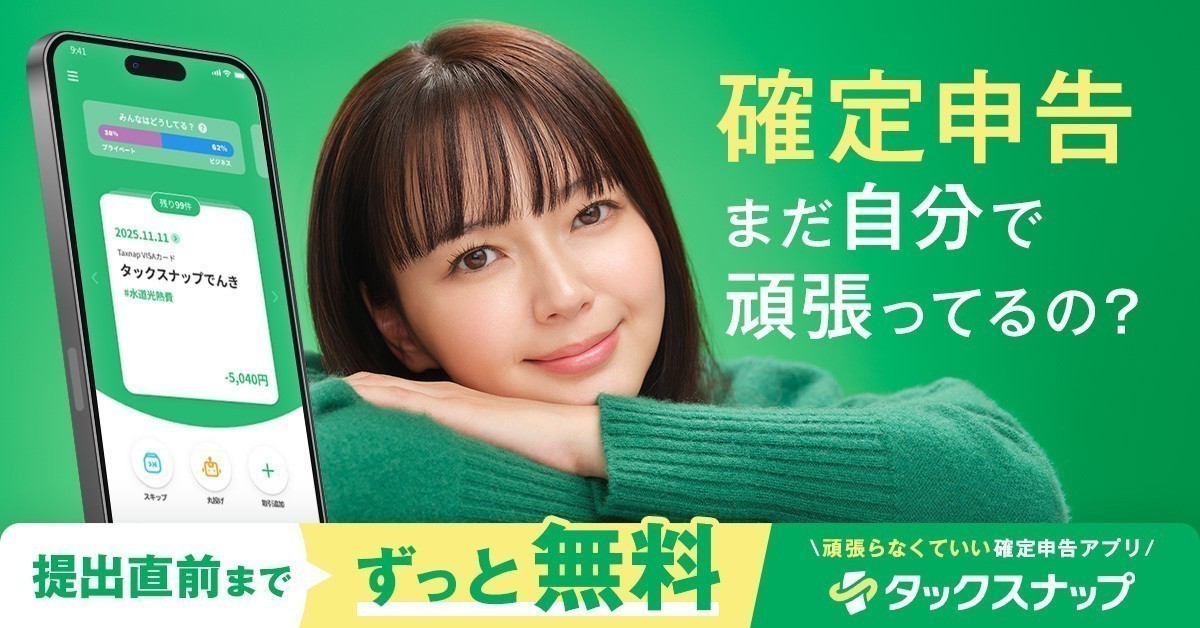 もし、これらのソフトにある多機能さが逆にストレスに感じるのであれば、スマホのスワイプ操作だけで完結可能な「タックスナップ」の選択肢もおすすめです。